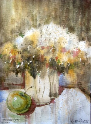 Натюрморт з зеленим яблуком акварель 2025.08.29 _21х30см арх. Кудлай В. 🇺🇦