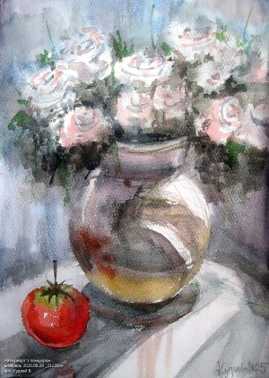 Натюрморт з помідором акварель 2025.08.29 _21х30см арх. Кудлай В. 🇺🇦