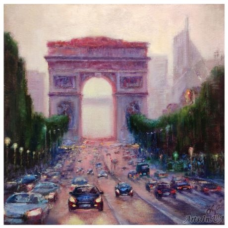 Оболонская Светланаoil on canvas Cityscape Arc de triomphe Paris Oil painting Oil on canvas 16×16 inch 40×40cm
